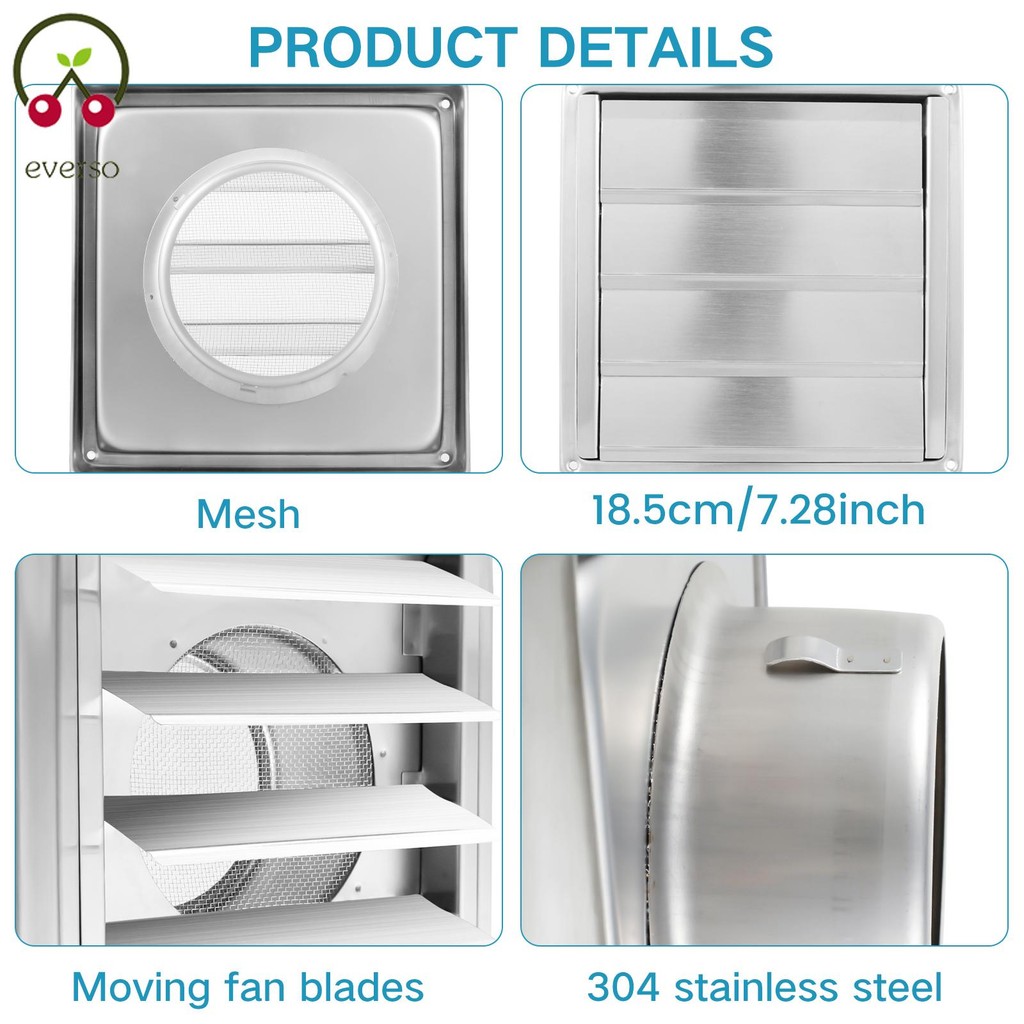 4inch Dryer Vent Cover with Mesh Screen 304 Stainless Steel Louvered Extractor Wall Exhaust Covers with 4 Screws for Dryer and Extractors SHOPTKC2633