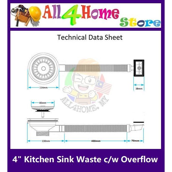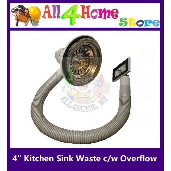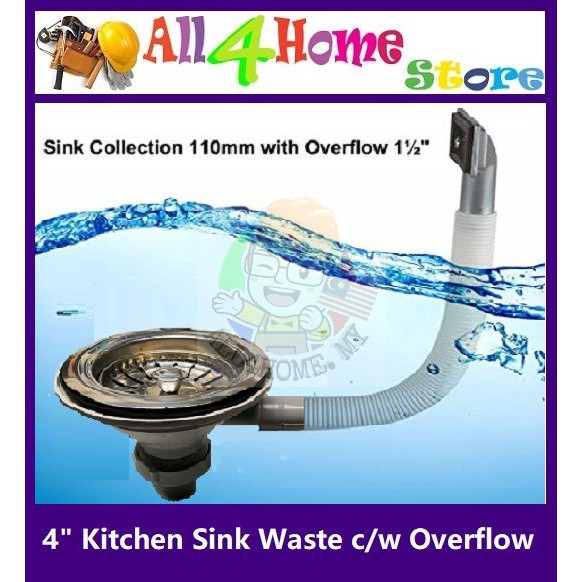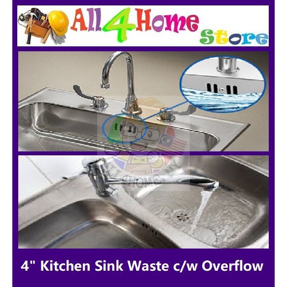 4inci (100mm) Kitchen Sink Waste with OVERFLOW - Stainless Steel Top