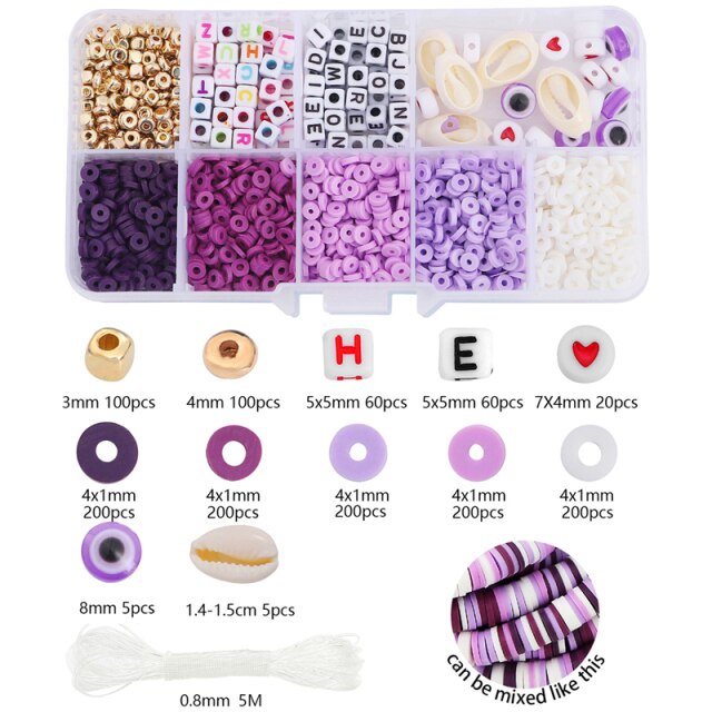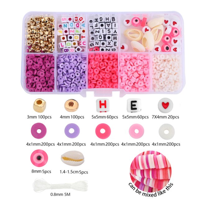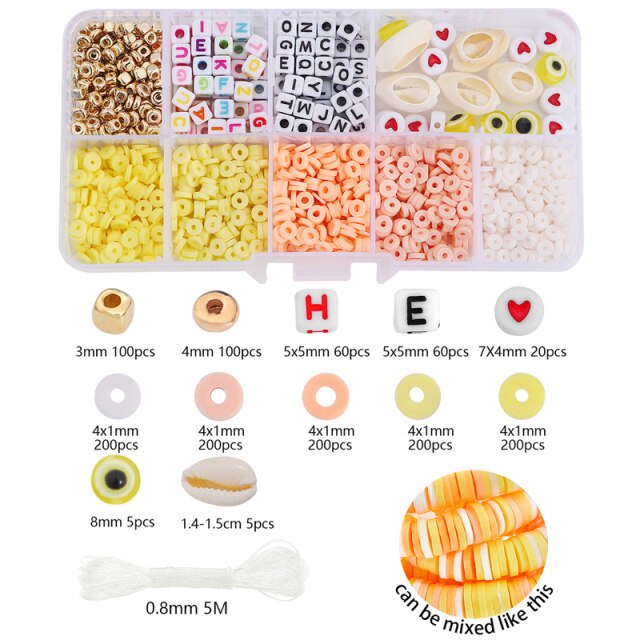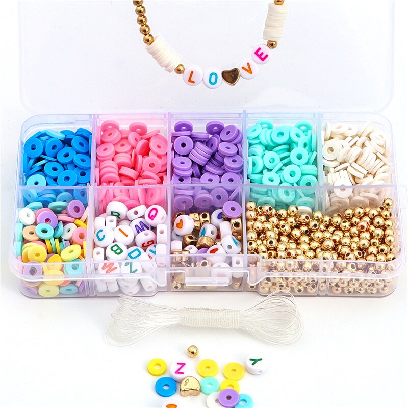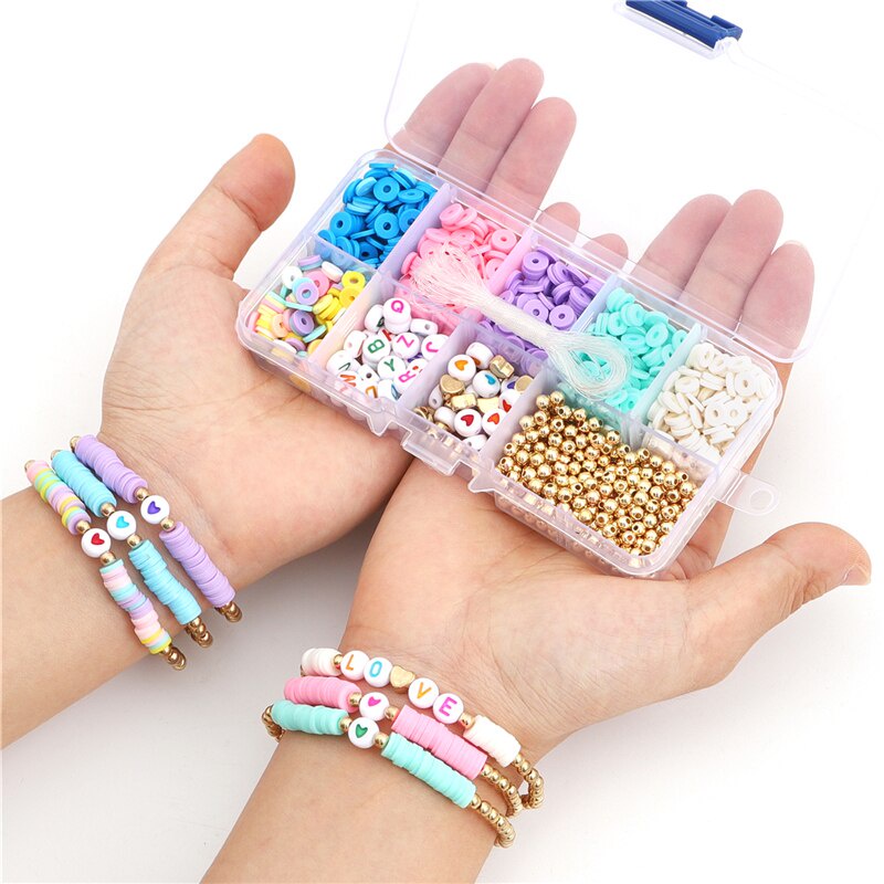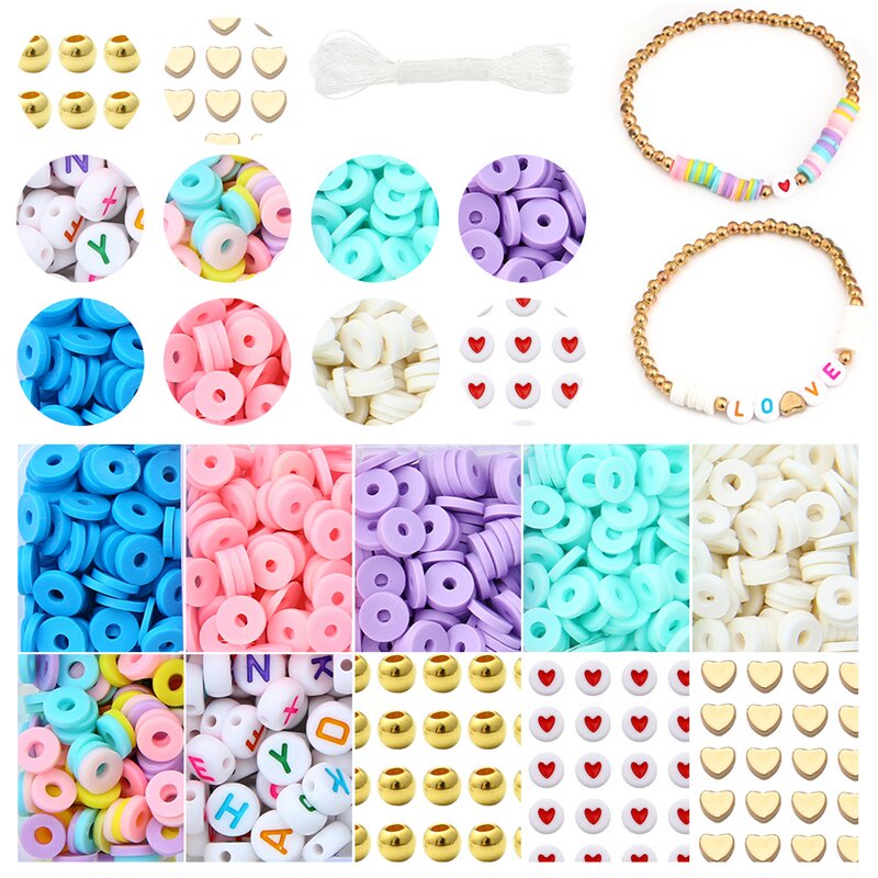 4mm Polymer Clay Disk Beads Bracelet Making Kit Fantastic Color Flat Round Heishi Beads Assortments Matched Beach