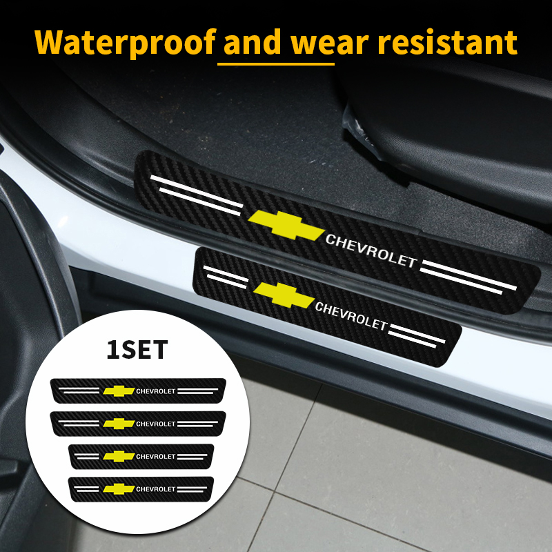 4pcs Car Door Sill Sticker Styling Car Logo Pattern Threshold Protection Strip for Chevrolet Captiva Colorado Cruze Spark Malibu Trax Aveo