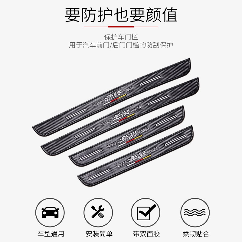 4pcs Carbon Fiber Door Sill Plate Protector Stickers Car Door Sill Guard Decoration Guards Accessories For RALLIART