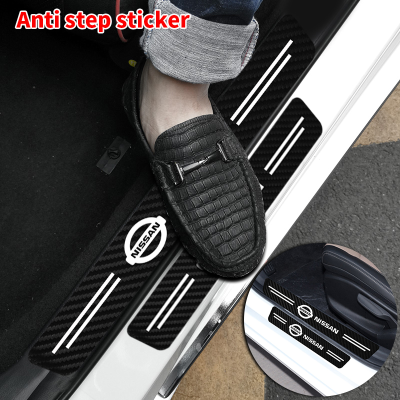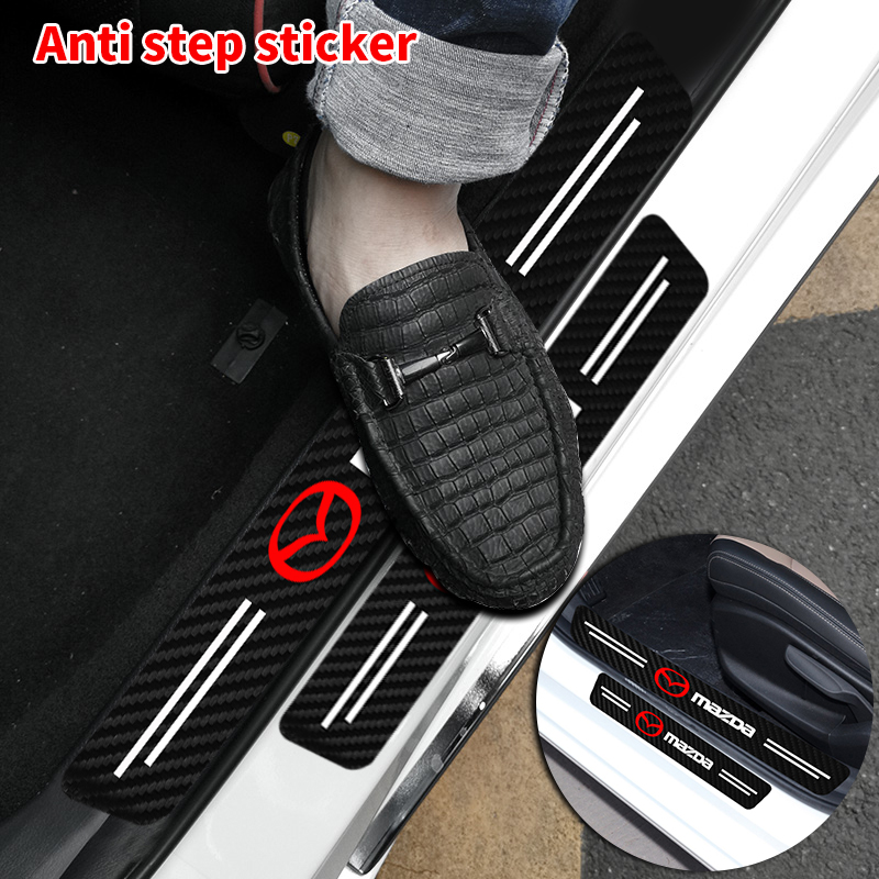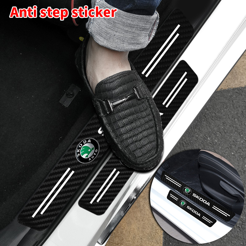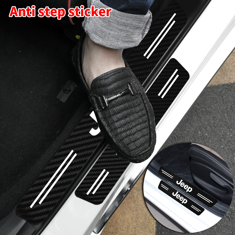 4pcs Carbon Fibre Leather Car Door Step Bumper Guard Protector Anti-stepping Stickers for Peugeot Jeep Toyota Ford