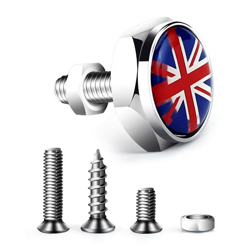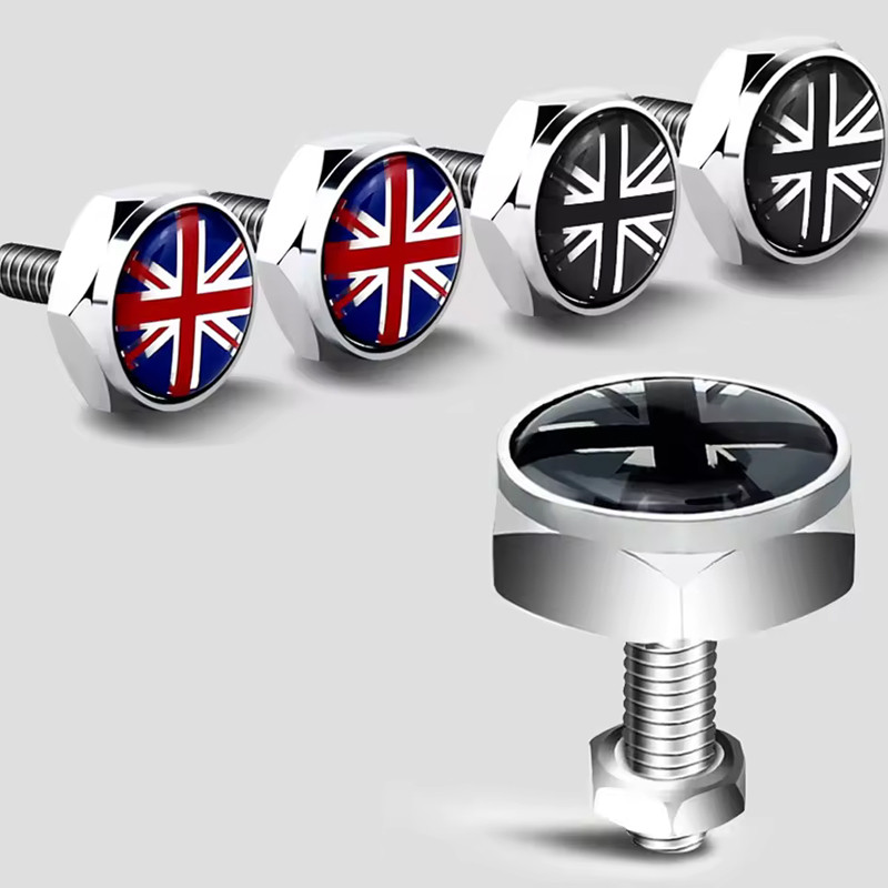 4pcs For BMW Mini Cooper JCW One S Countryman Car License Plate Frame Fixed Bolt Screw Nut Caps British Flag Emblem Accessories