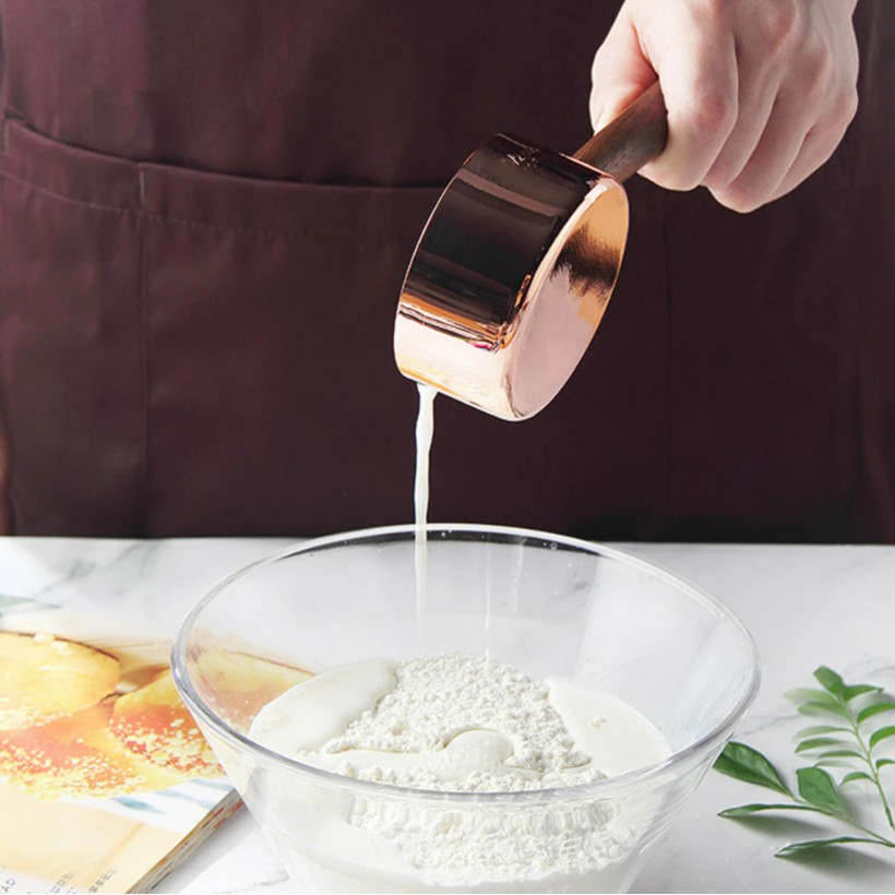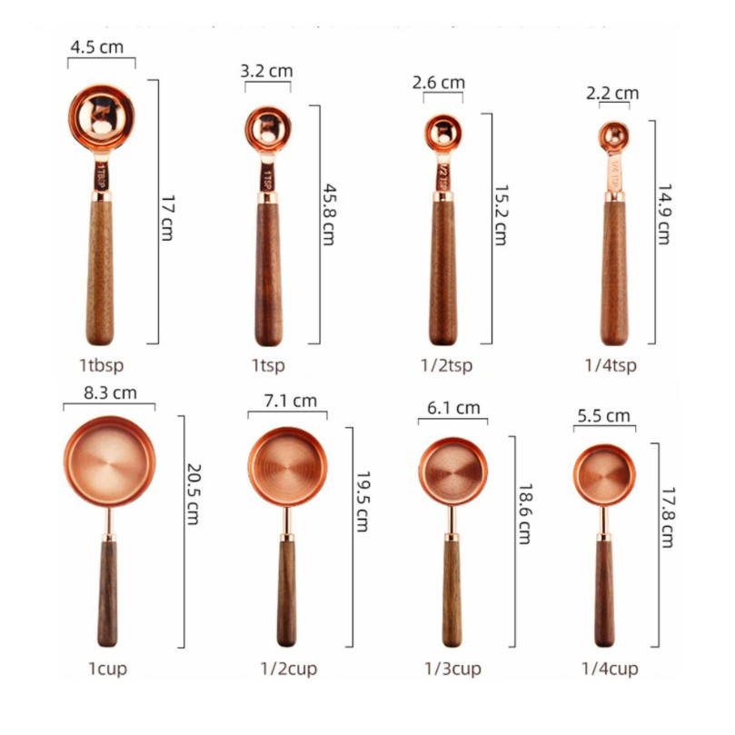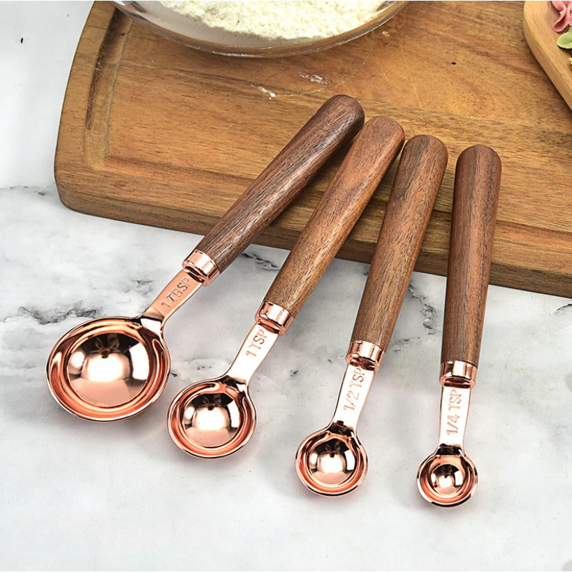 4pcs Kitchen Measuring Tool Measuring Cups Spoon Walnut Wooden Handle Rose Gold Cups Measuring Spoon AMYA-KTWR21007