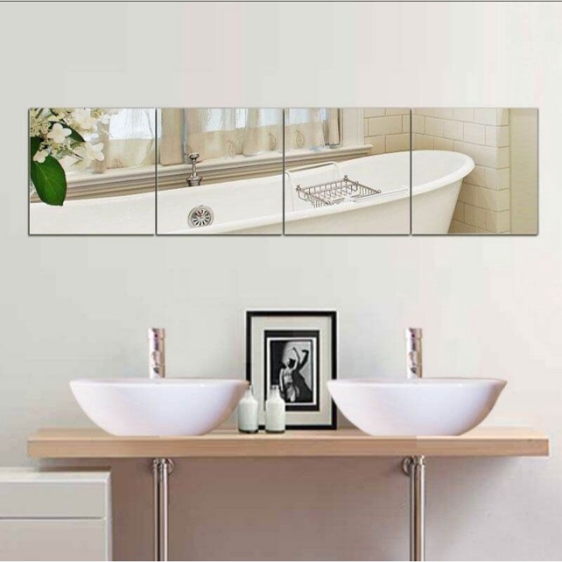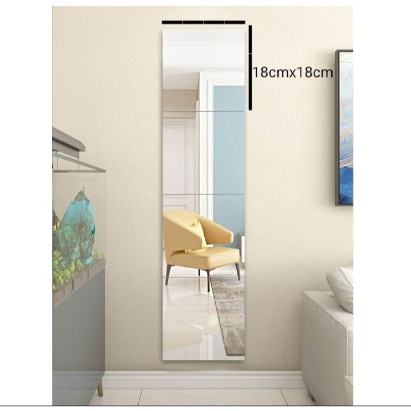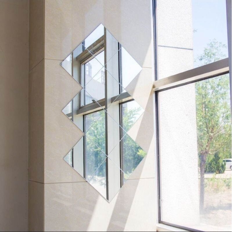 4pcs Mirror Sticker Wall Decor 18cmx18cm Cermin Sticker Hiasan Dinding Ready Stock