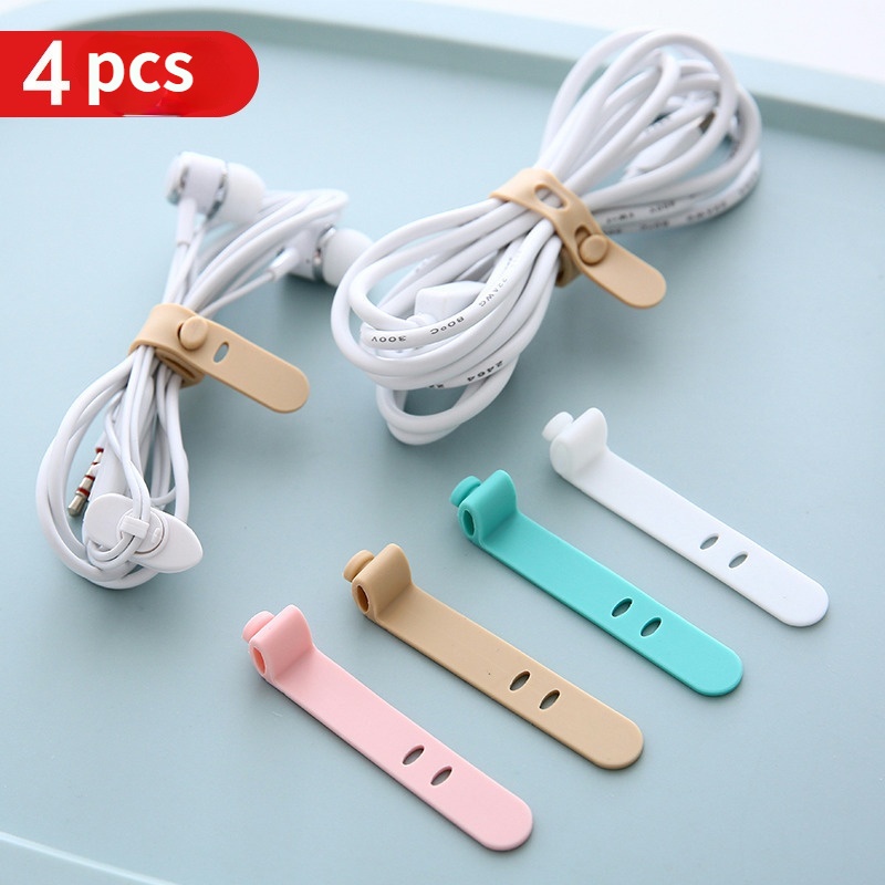 4pcs/set Data Cable Trimmer Winder Silicone Strap Earphone Cable Soft Rubber Storage Tape Charging Cable Strap