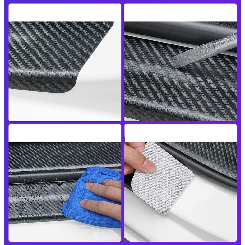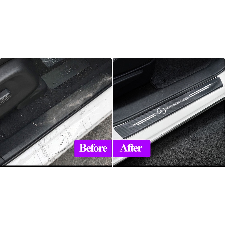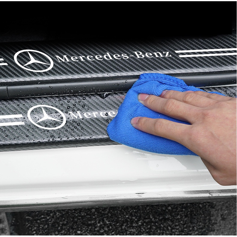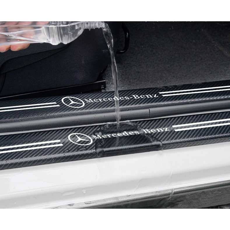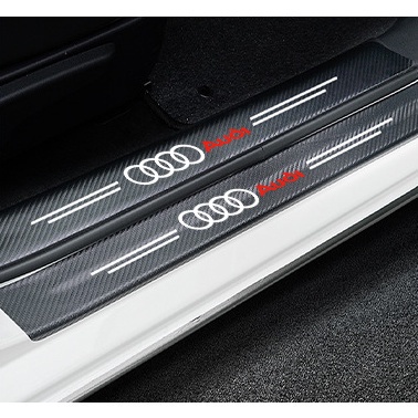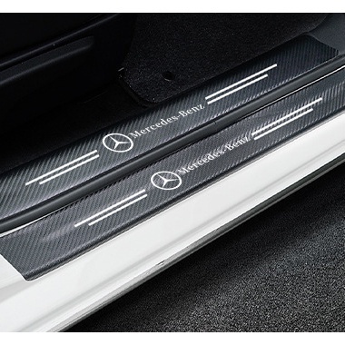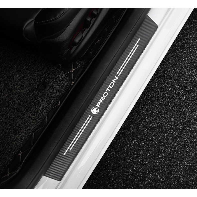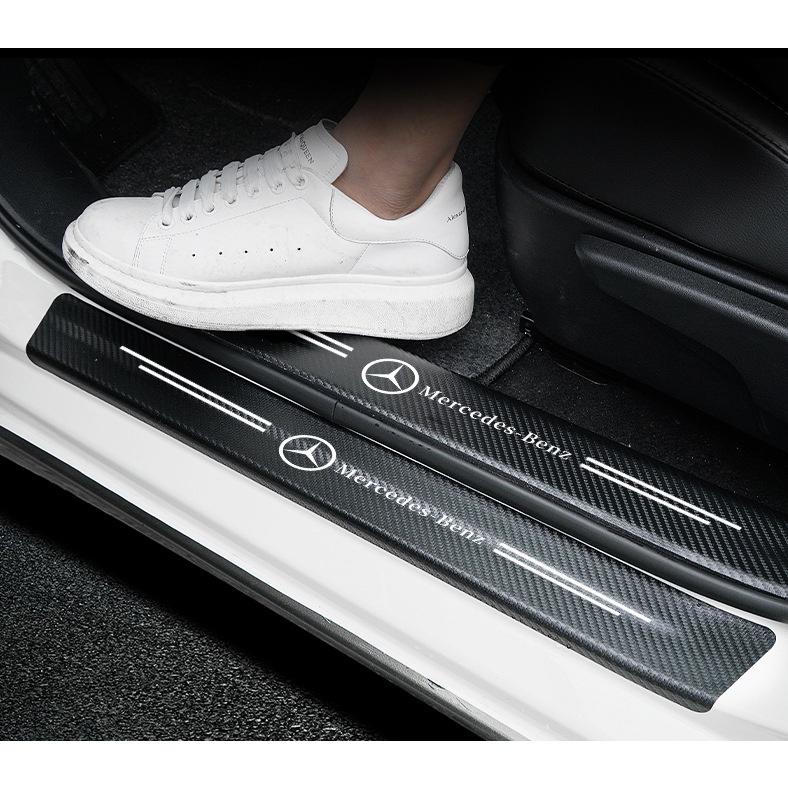 4pcs/set car door sill strip carbon fiber leather car logo door decoration anti-collision strip suitable for anti-slip and anti-abrasion of cars