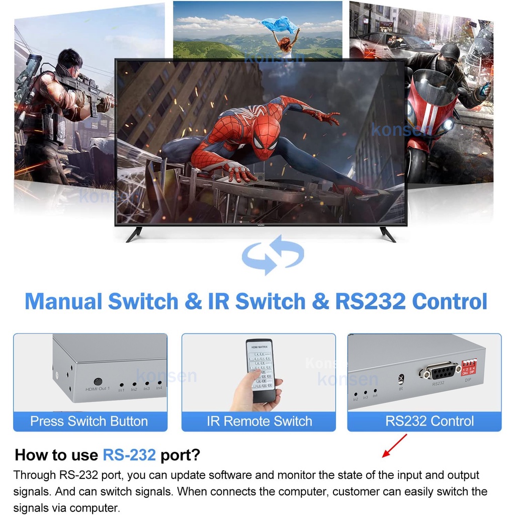 4x4 HDMI Matrix Switch with Audio output 4K 30Hz HDMI Switcher Splitter 4 in 4 out True Matrix Selector With EDID Extractor RS232