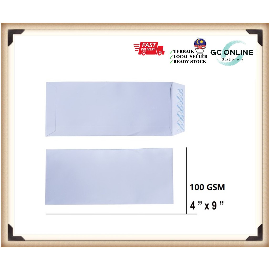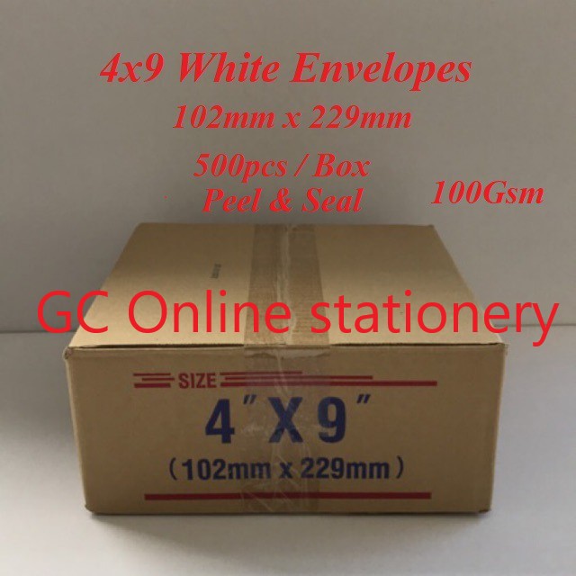 4x9 White Envelopes Peel & Seal 100Gsm / Sampul Surat Putih (500pcs/Box) 102mmx229mm