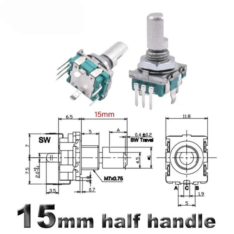 5/2pcs EC11 Encoder with Switch 20 Position Incremental 360 Rotary Encoder Knob Button Switch EC11 Arduino Digital Potentiometer 15/20mm Plum Half Shaft