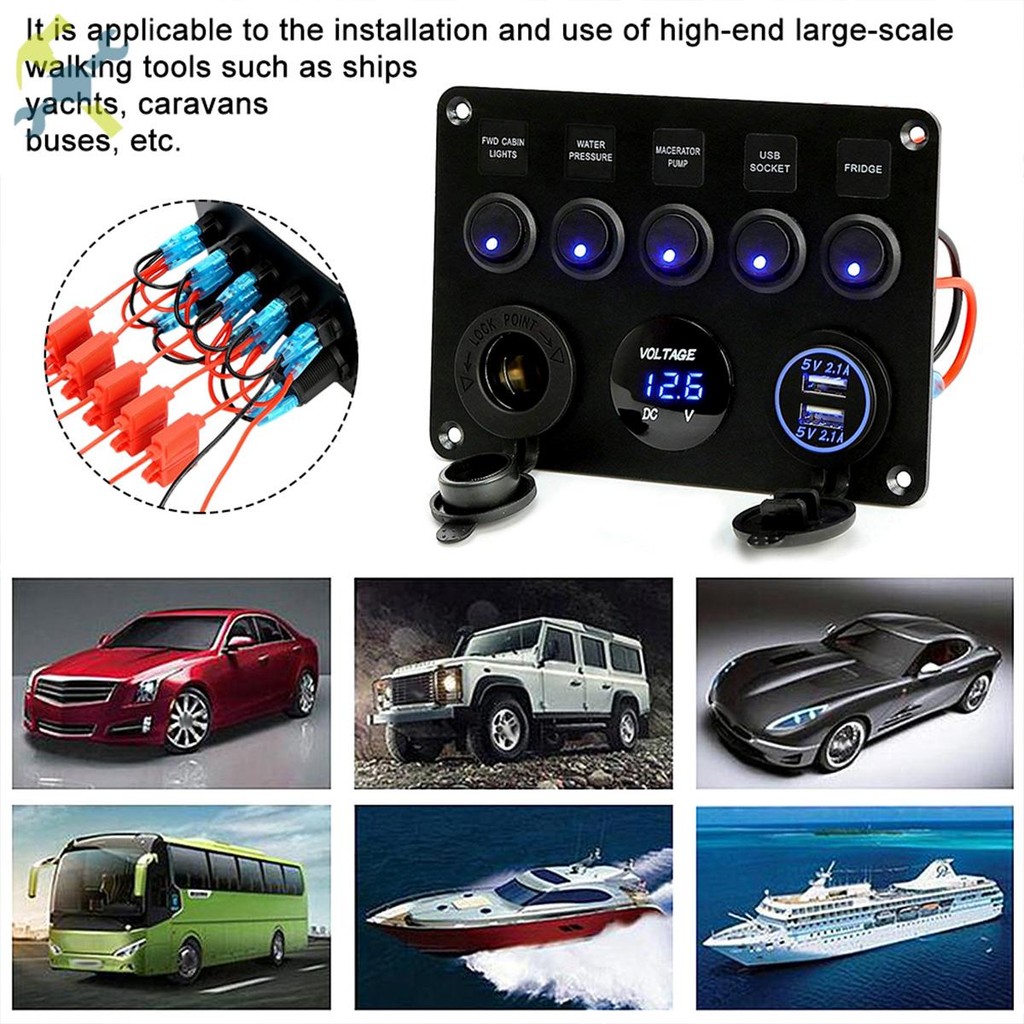 5 Gang Rocker Switch Panel Waterproof Marine Ignition Switch Panel 12V/24V LED Rocker Switch SHOPCYC8112