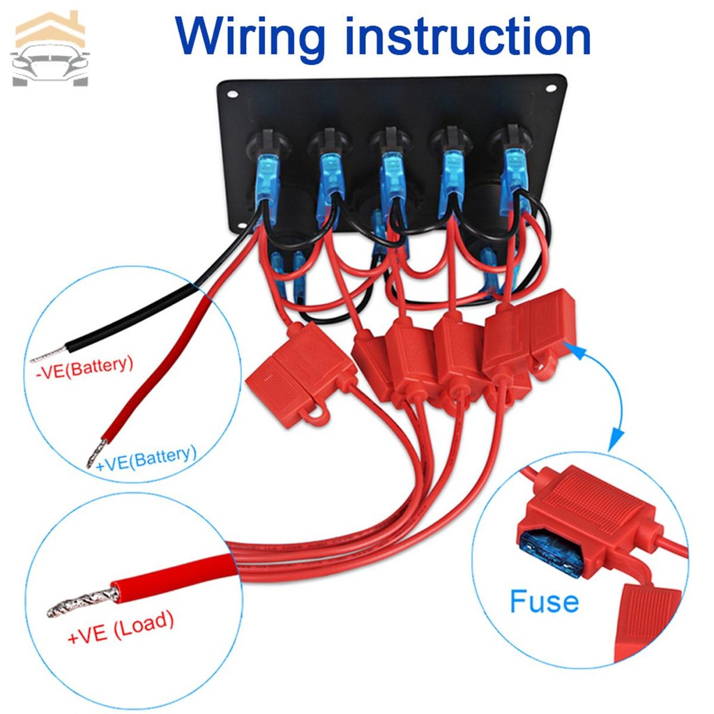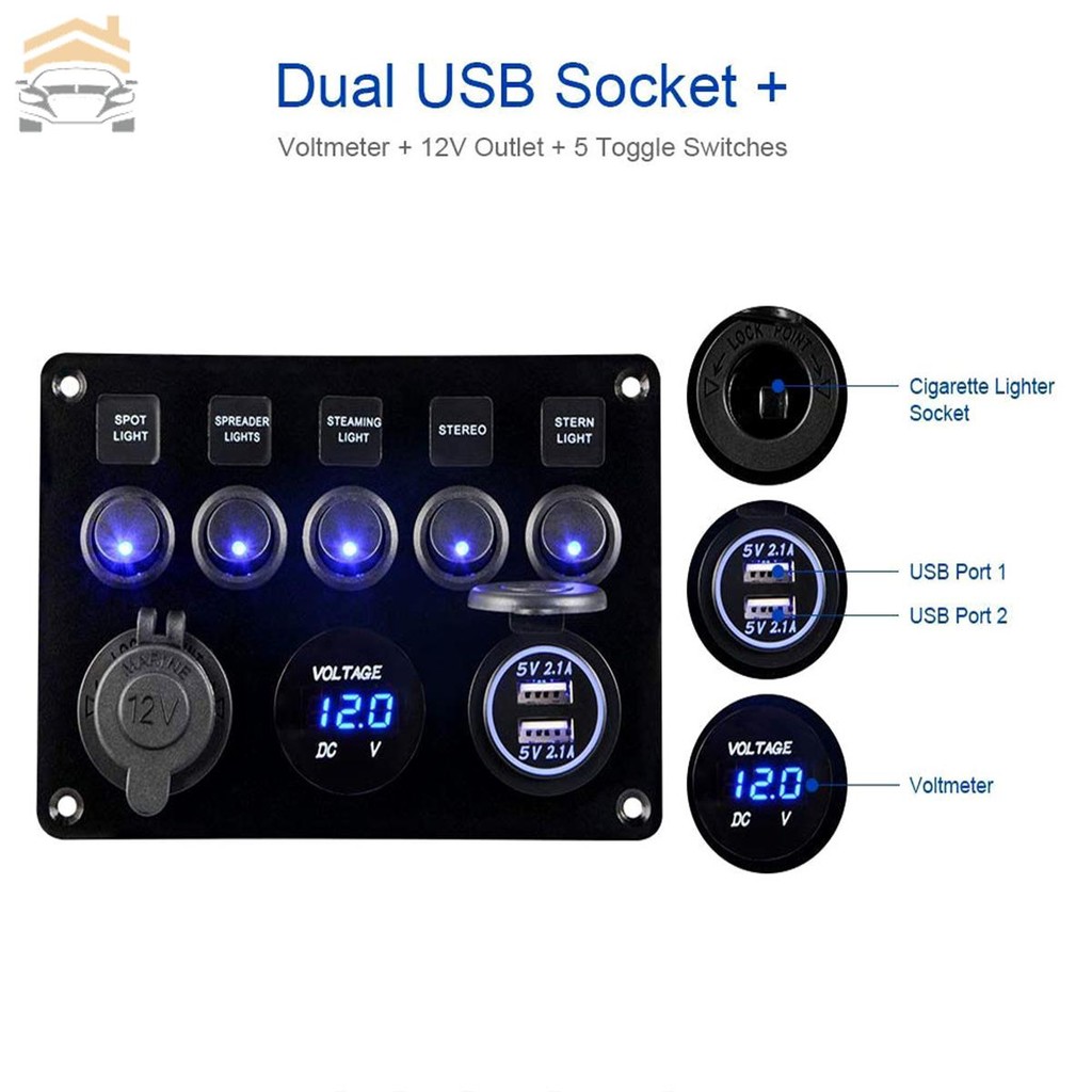 5 Gang Rocker Switch Panel Waterproof Marine Ignition Switch Panel 12V/24V LED Rocker Switch SHOPTKC6205