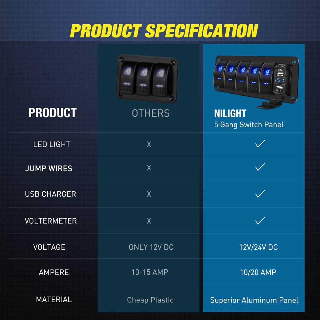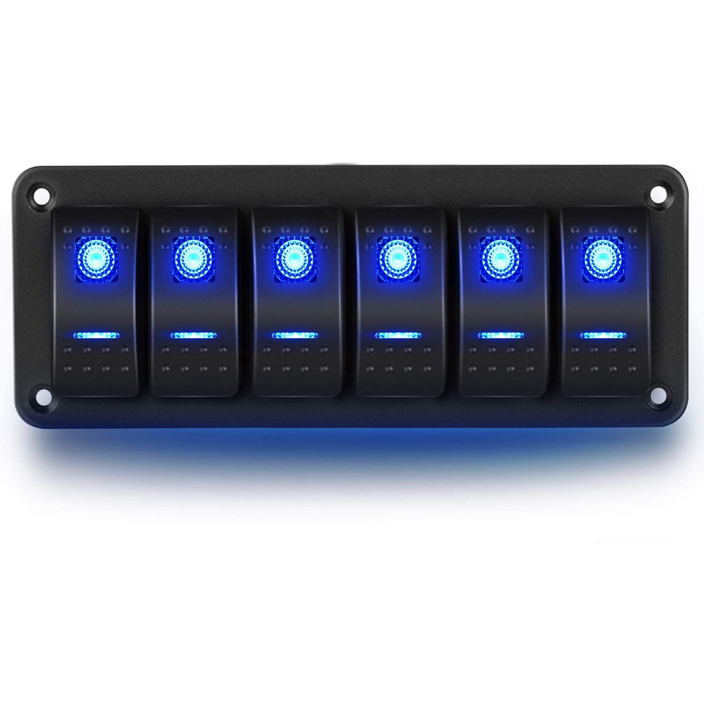 5 Gang Rocker Switch Panel with 4.8 Amp Dual USB Charger Voltmeter Waterproof 12V 24V DC Rocker Switch with Stickers for Car Trucks Boats RVs
