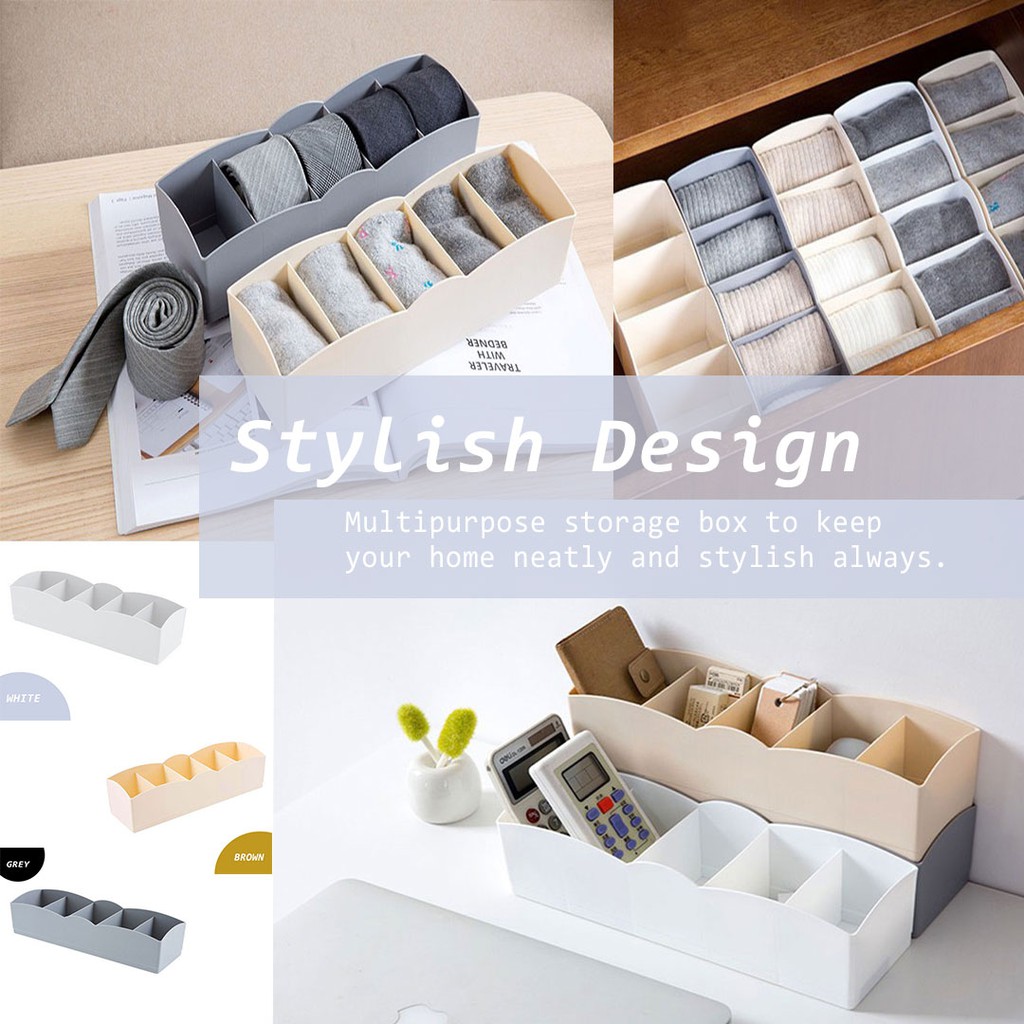 5 Grids Stocking Underwear Stokin Durable Storage Organizer Kotak Simpan Pakaian Dalam Glove Handkerchief Wardrobe Box