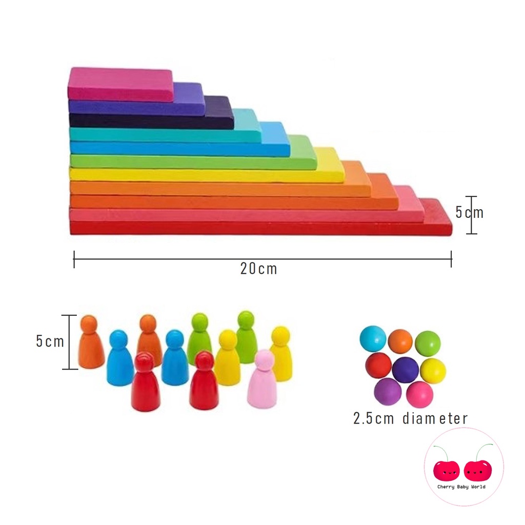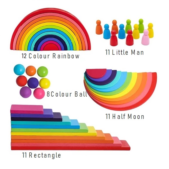 5 In 1 Wooden Rainbow Play Set Rainbow Puzzle Set Montessori Early Learning Kids Toy