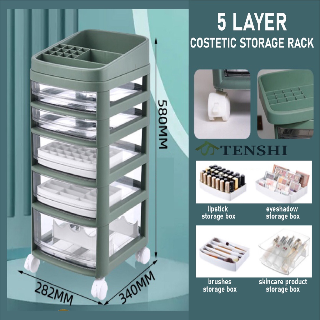 5 Layer Cosmetic Storage Rack Trolley Quality Storage Rack With Drawers Anti-Dust Compartments Multi-functional Storage