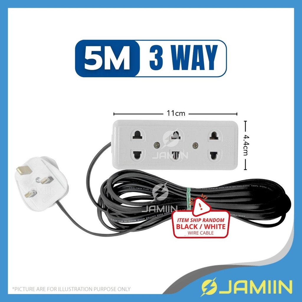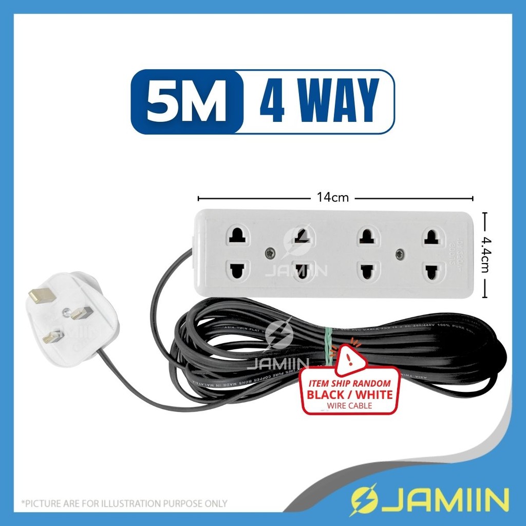 5 MTR 3 Way/4 Way 2-Pin Plug Socket Extension Plug Wayar Extension Multi Plug Extension Cord Plug Socket Soket Extension
