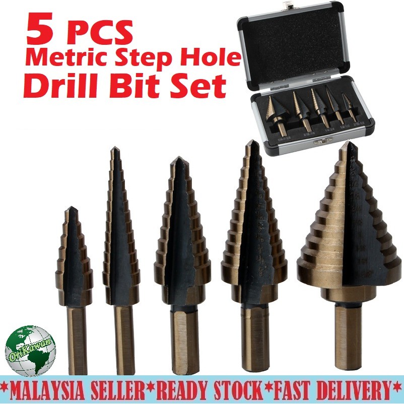 5 PCS HSS Metric step Hole Drill Bit Set Spiral Step Cone Multiple Step With Metal Case