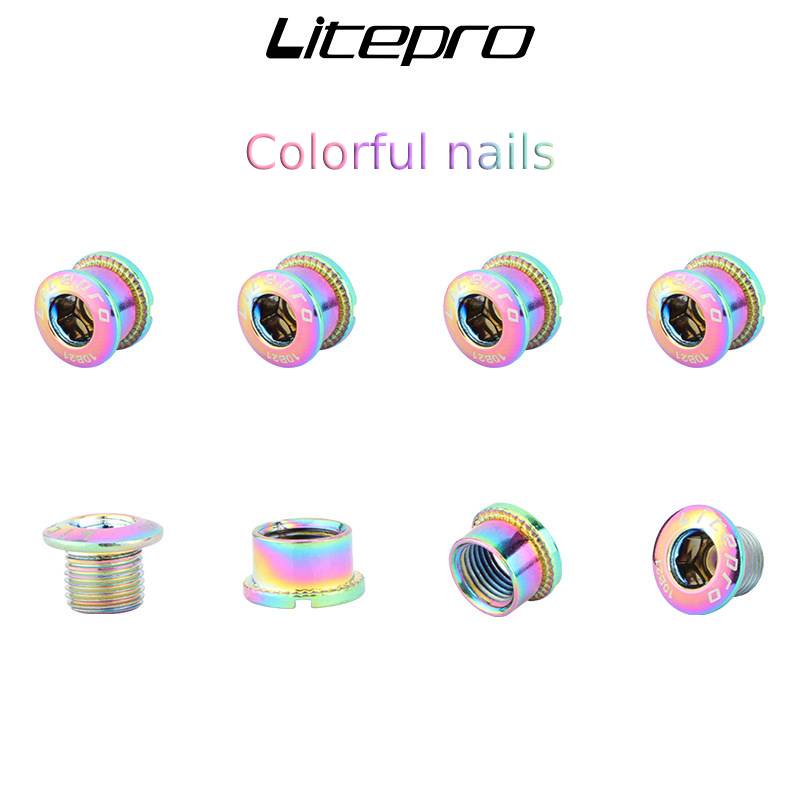 5 PCS Litepro MTB Road Bicycle Single Chainring Plate Bolts Screw Folding Bike Colorful Steel Nuts Crankset Chainwheel Parts