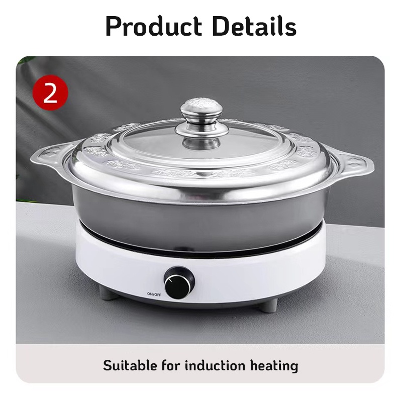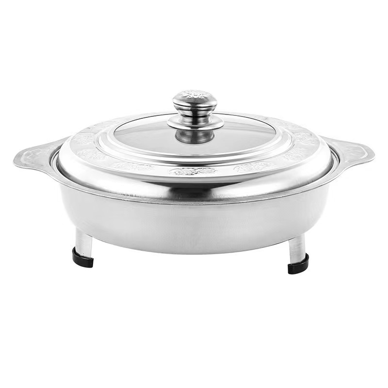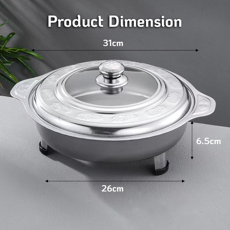 5 PCS Round Buffet Serving Tray Embossed Glass Stainless Steel Catering Tray Suitable For Party/Event/Weddings/Raya