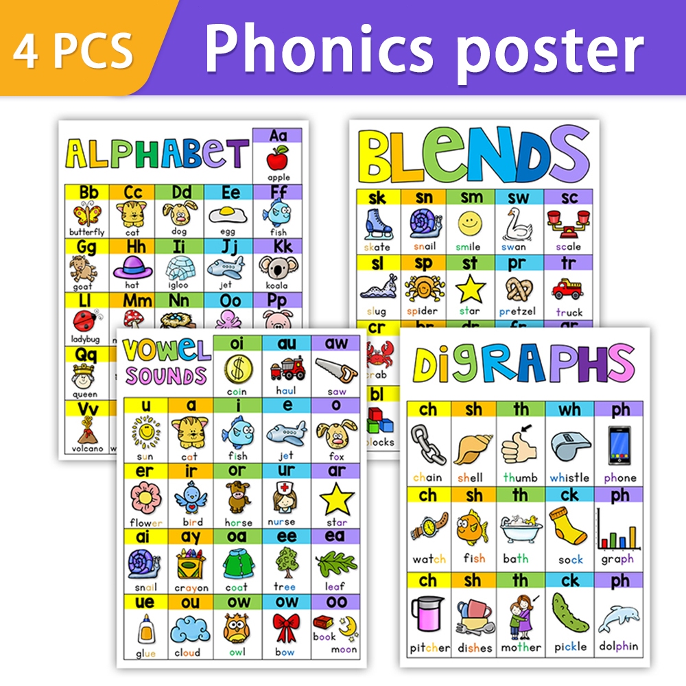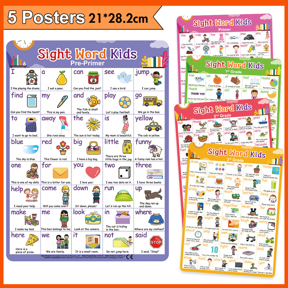 5pcs Children Learning Phonics Sight Words English Posters Montessori Kindergarten Educational Cognitive Vocabulary Card Parent-Child Interactive Toys Homeschool Classroom Decor