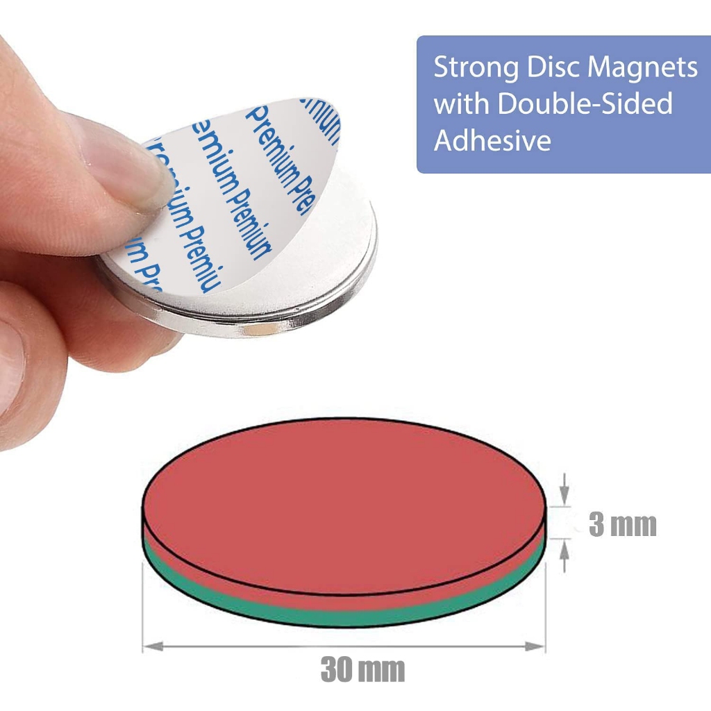 5 Pack Strong Magnet, 30 x 3 mm 8 KG Pull Super Strong Neodymium Disc Magnets, Magnets Strong with Double-Sided Adhesive, Powerful Permanent Magnets for Fridge,DIY