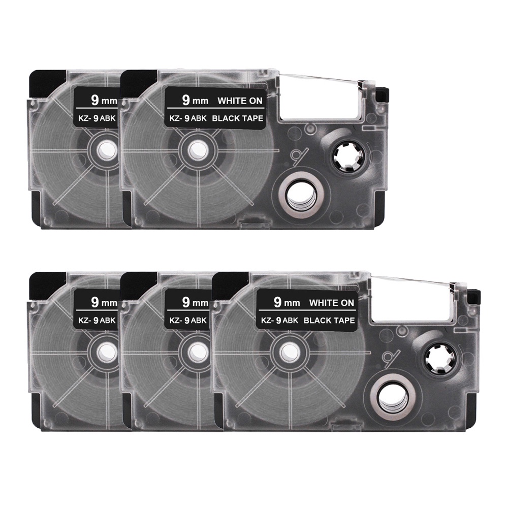 5 Packs 9mm XR-9WE XR-9WE Label For CASIO XR-9X XR-9YW XR9WE XR-6GN Label Cartridge For CASIO Ez-Label Printer KL-60 KL-60SR Kl-100 Kl-120 Kl-130 Kl-170 Kl-E300 Label Maker