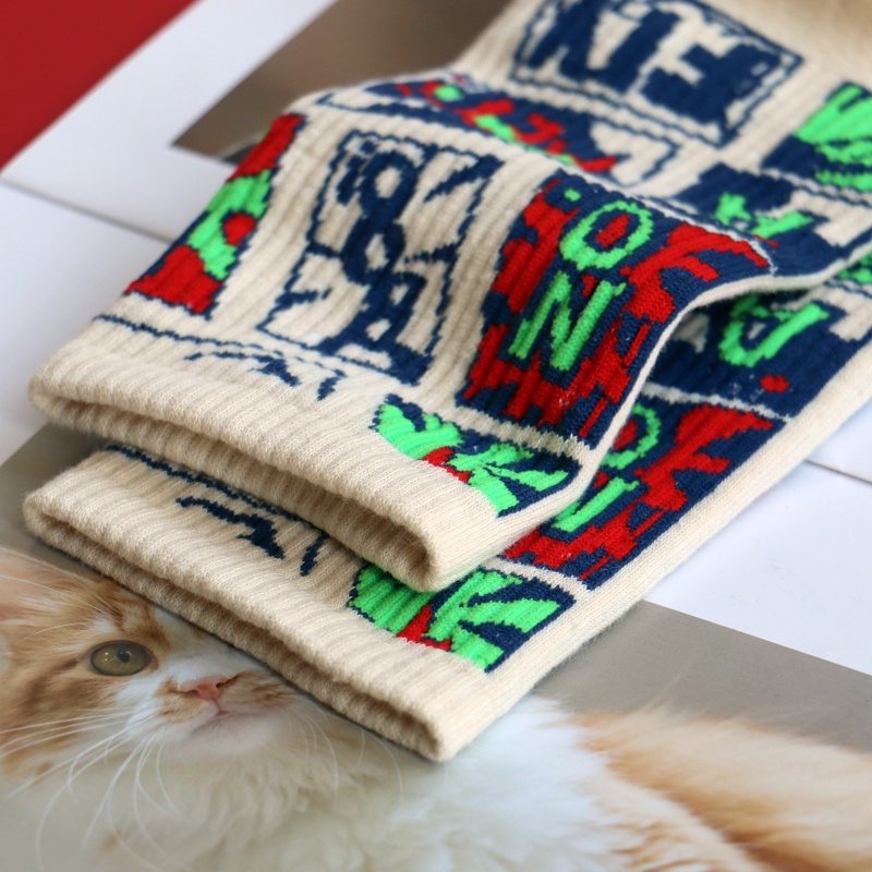 5 Pairs Trendy Mid-Tube Socks Men Women Unique All-Match Cartoon Street Genderless Wear Trendy Socks Student Stockings Thin Style