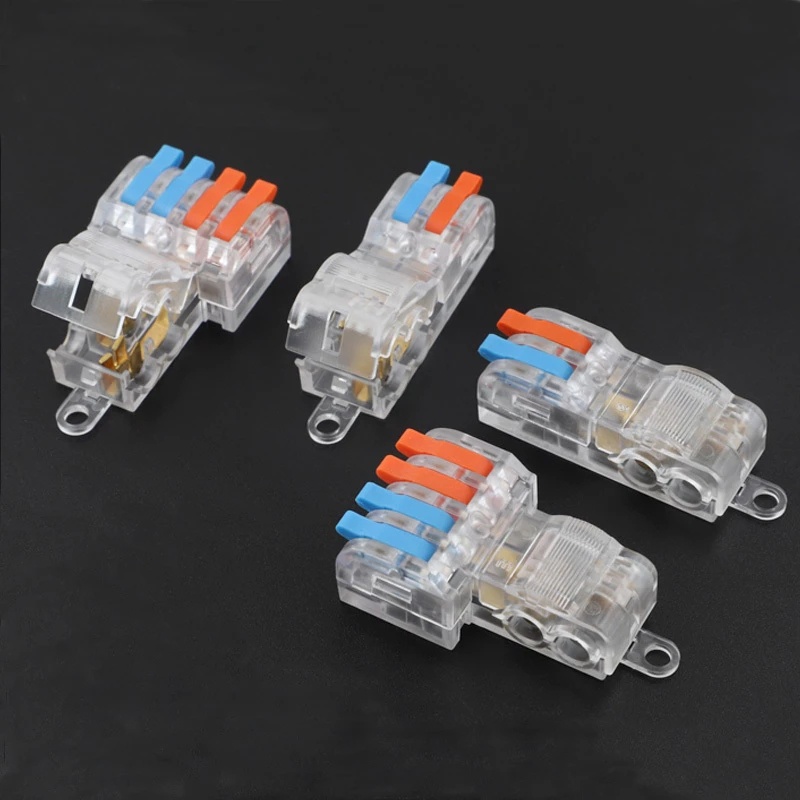 5 Pcs T-type Electrical Wire Connector Stripping-free Brancher Quick Cable Wiring Terminal Block Copper Core Two-in Four-out Branch