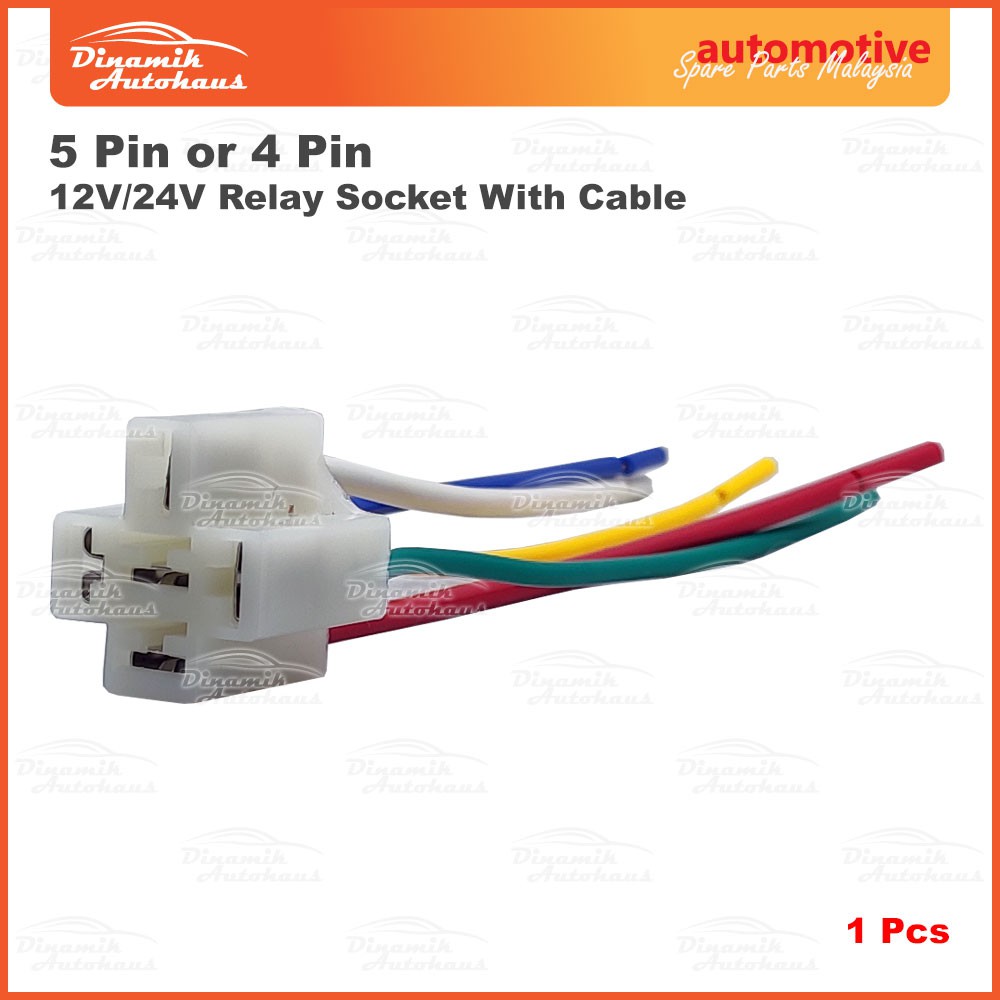 5 Pin Relay Socket (Soket Relay) Wire For 12 Volt / 24 Volt Universal Automotive Car Relay (1 Pcs)
