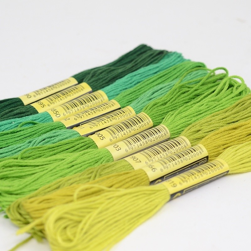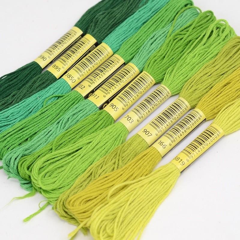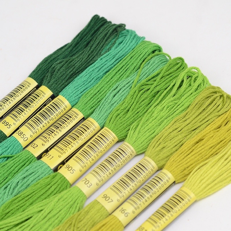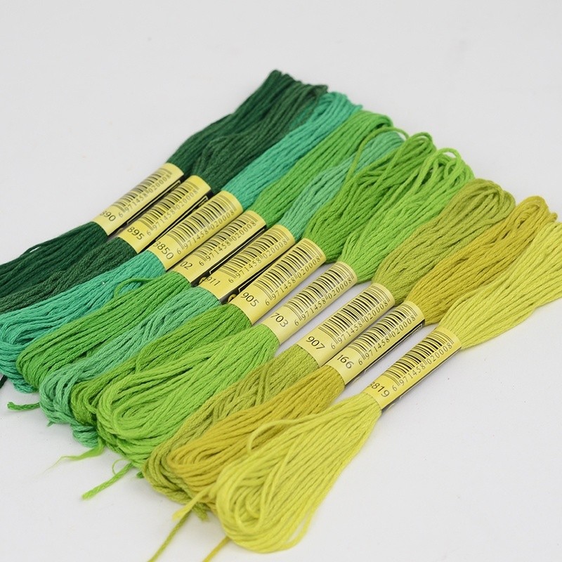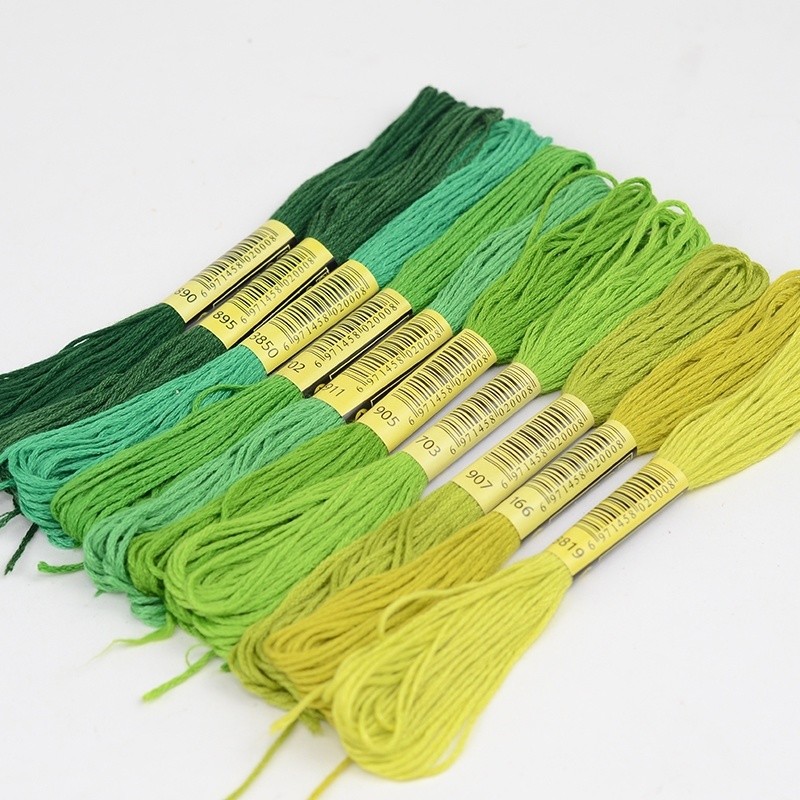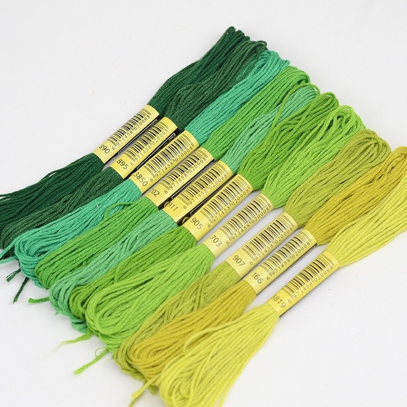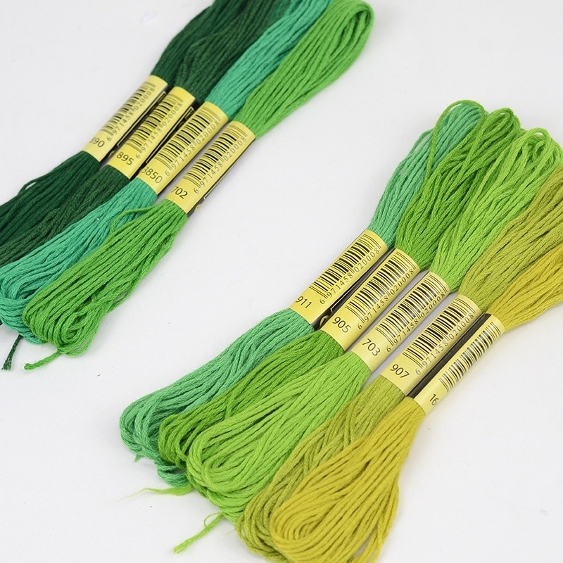 5 Skeins DMC Cross Stitch Thread - Colors 3819, 895, 702, 911 - Cotton Embroidery Replacement Thread for Weaving, Insoles & DIY Crafts