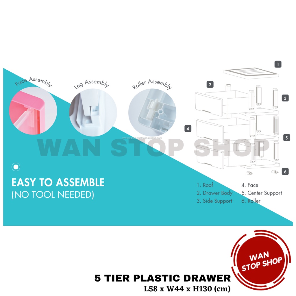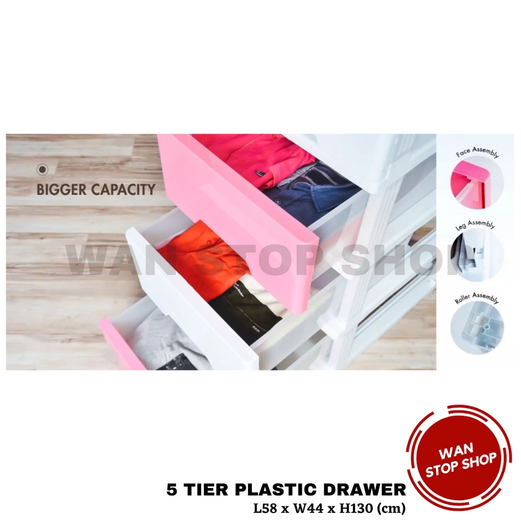 5 Tier Storage Cabinet Drawer Multicolor Big Drawer DIY Plastic Storage Wardrobe Large Space Ready Stock