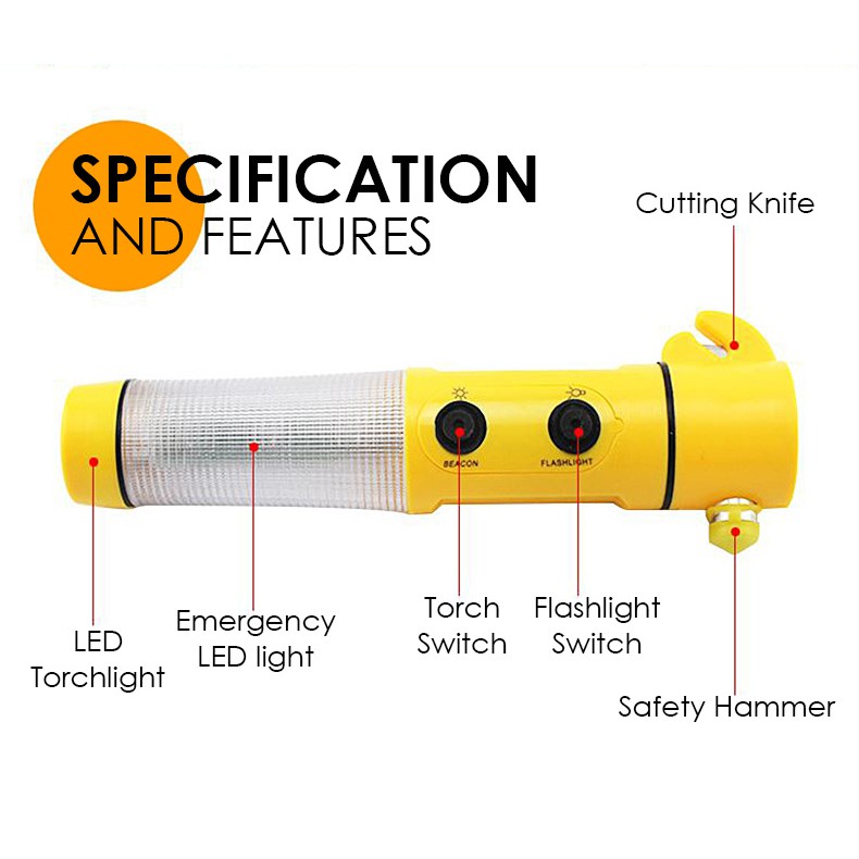 5 in 1 Emergency Torchlight Multifunction LED Flashlight Safety Hammer Seat Belt Cutter Car Accessories