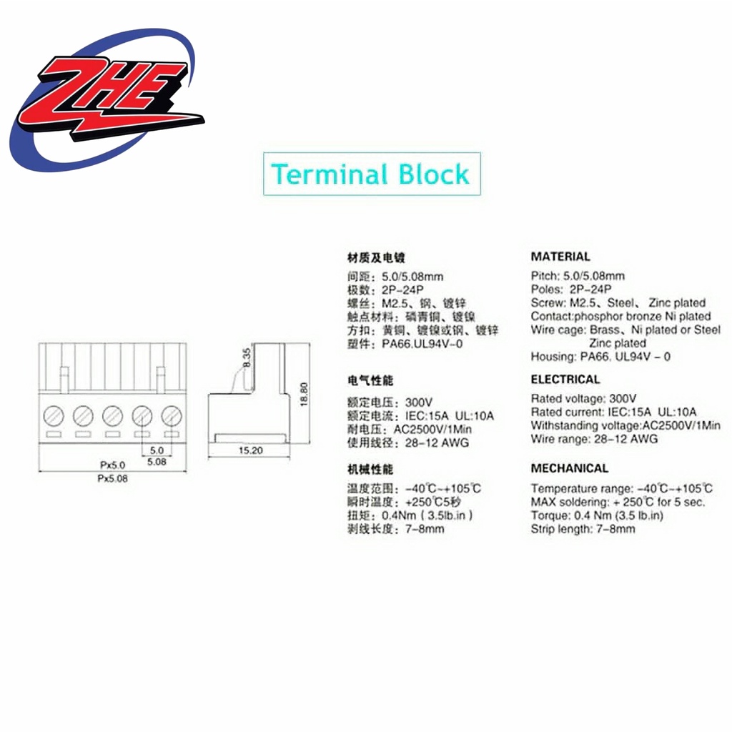 5.0/5.08MM PCB SCREW TERMINAL BLOCK WIRE CONNECTOR 300V 10A / STRAIGHT TERMINAL SOCKET / L ANGLE TERMINAL SOCKET