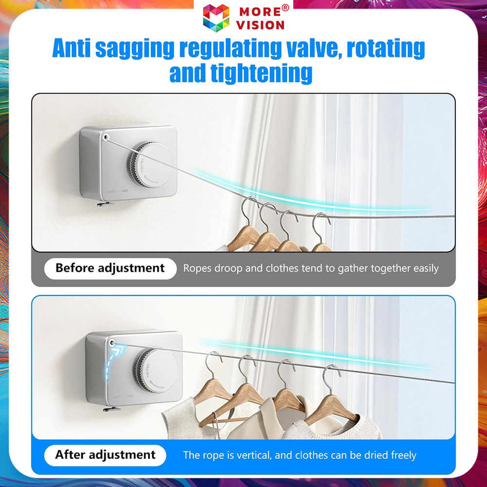 5.1m Retractable Clothesline Clothes Hanger Stainless Steel String Dryer Hanging Line Home Indoor Wall Mounted Rope