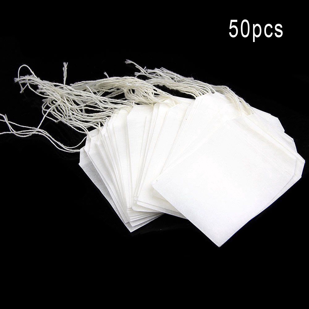 5.5 x 7CM 50Pcs Biodegradable Tea Filter Bags / Safe & Natural Material Disposable Tea Filter Bags / Empty Cotton Drawstring Seal Filter Tea Bags / Tea Infuser for Loose Leaf Tea