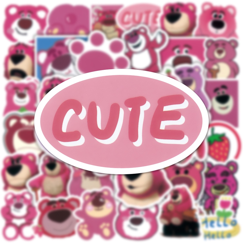 50/25/10PCS Lotso Strawberry Bear PVC Waterproof Cool Stickers for Laptop Skateboard Bicycle Bike Luggage Deacl