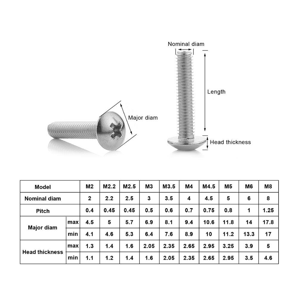 50/25/10pcs Cross Recessed Truss Head Machine Screws M3 M4 M5 Mushroom Big Flat Head Screw 304 Stainless Steel Philips Screw