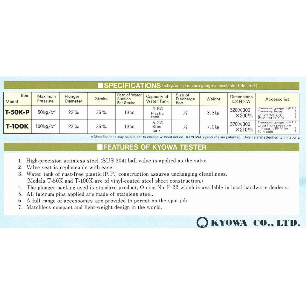 50 BAR Kyowa T-50K-P Manual Pressure Test Pump (NEW & ORI KYOWA))