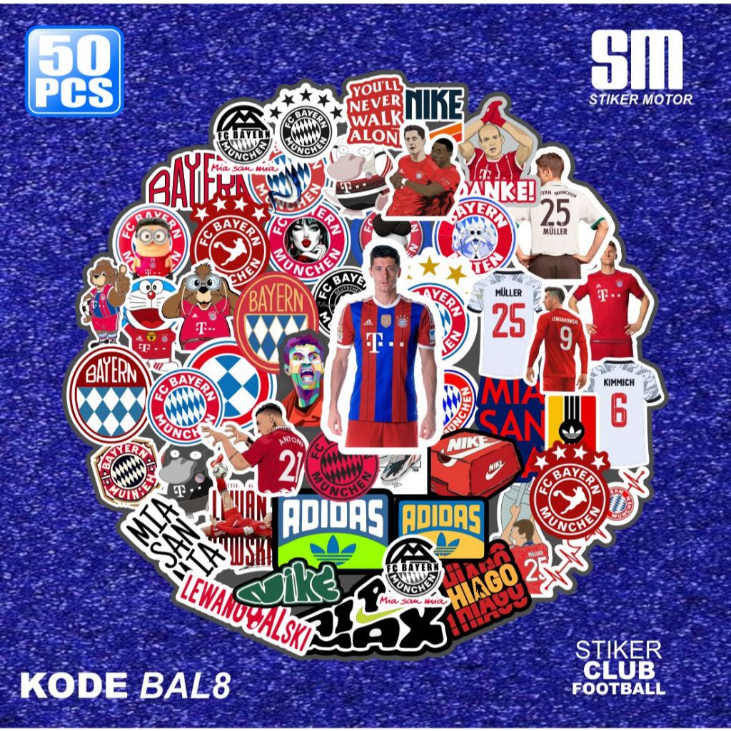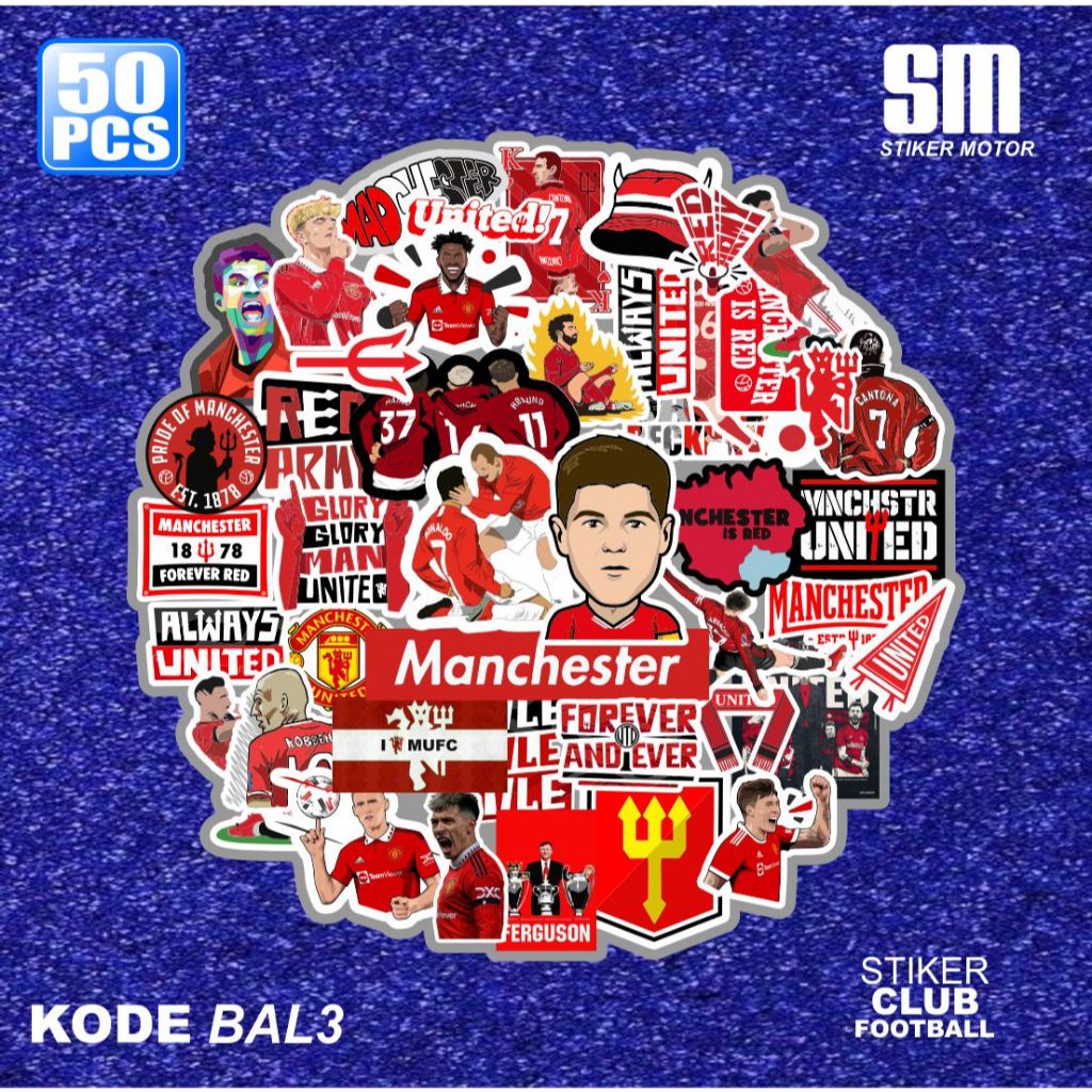 50 PCS Cool Football Club Stickers Waterproof Labtop Tumbler Stickers (BALL)