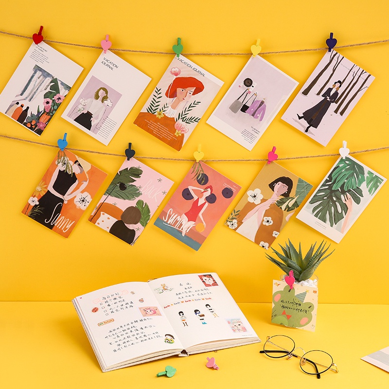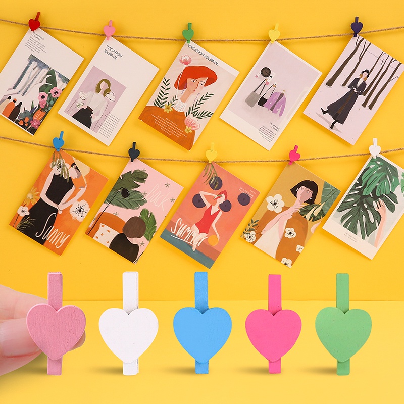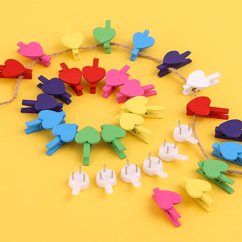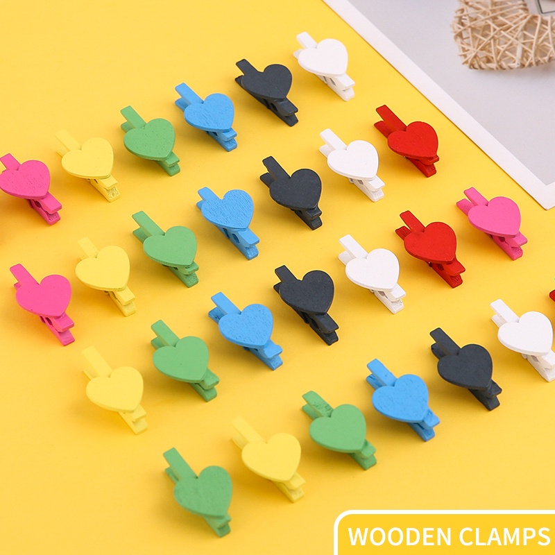 50 Pcs Cute Love Wooden Clip Colored Photo Wall Decoration Memo Clip