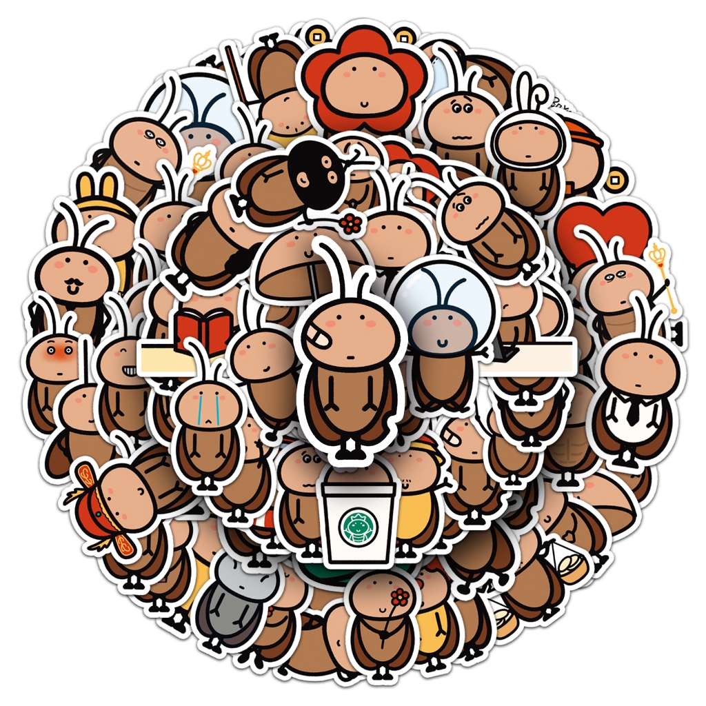 50 Piece Funy Cute Cartoon Cockroach Stickers Waterproof DIY For Phone Case Laptop Car Sticker Creative Home Decal