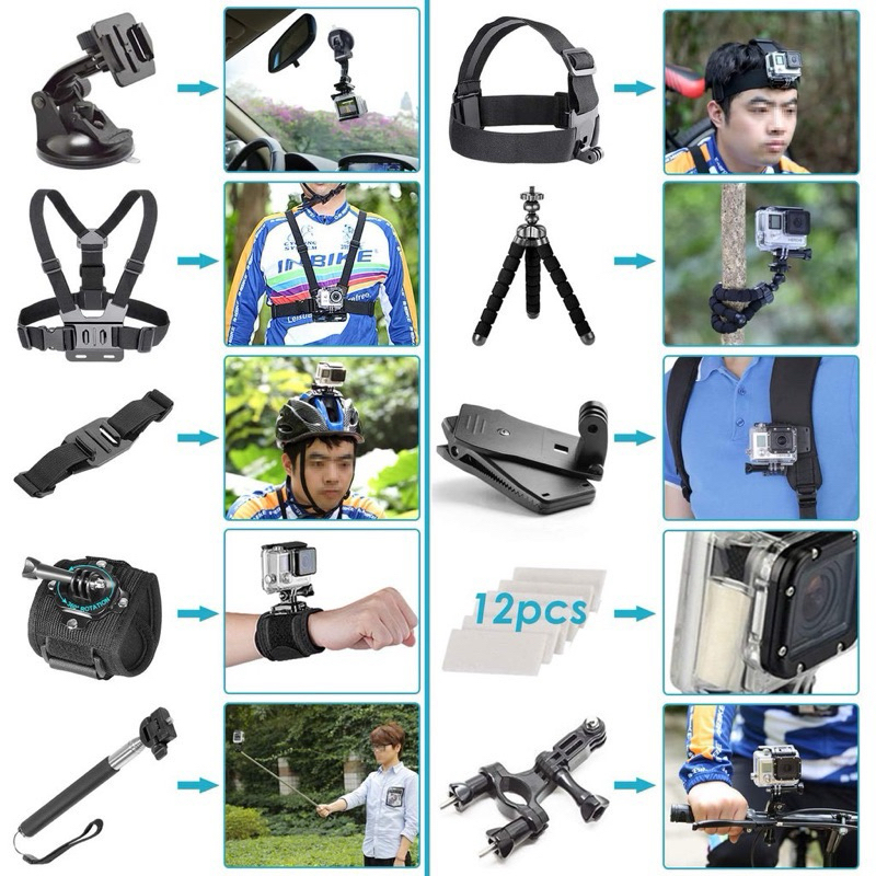 50 in 1 Action Camera Accessories Kit for GoPro Hero 10 9 8 7 6 5 4 3 DJI OSMO ACTION CAMERA with Carrying Case