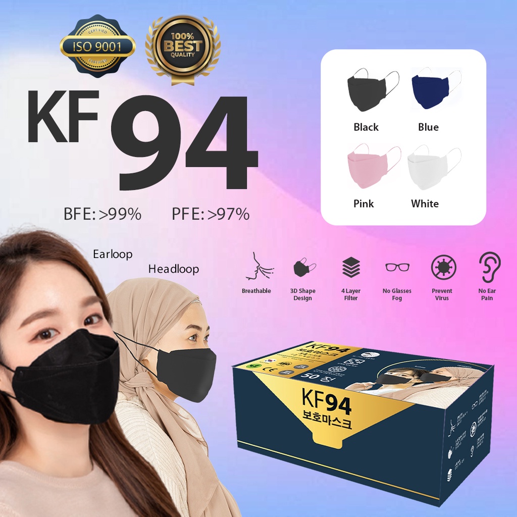 50 pcs Bundle Pack KF94 3D Korean Style Face Mask Disposable Earloop/Headloop 4ply Mask