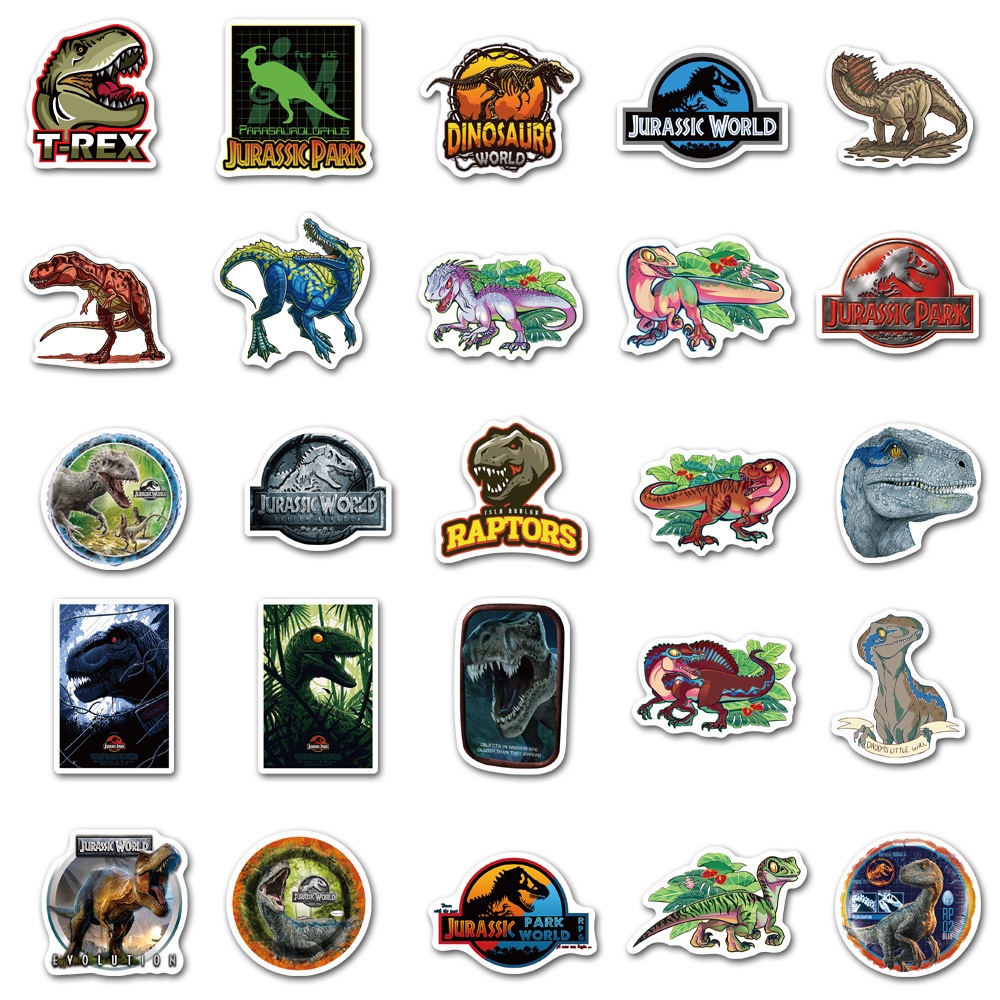 50 pcs Jurassic Park Classic Dinosaur Movie Waterproof PVC Stickers