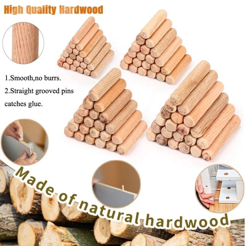 50 pcs Woodworking Doweling Jig Kit Round Grooved Fluted Wooden Plug Wood Dowel Pins Rod Drilling Guide Locator Tool/4pcs Dowel Pins Center Woodworking Alignment Tool Points Marker Drill Center Dowel