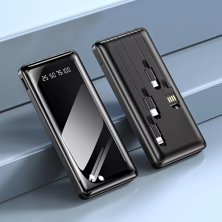 50000mAh Power Bank 4 Cables Full Capacity Power Bank Portable Fast Charging Digital Display Slim Battery