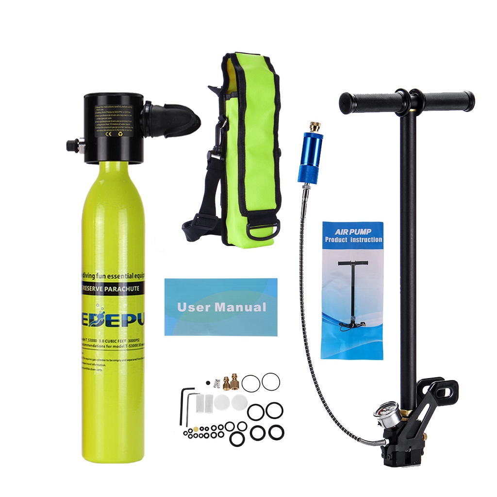 500ML Mini Diving Reserve Air Tank Set Portable Scuba Hand Pump Oxygen Cylinder Operated Pump with Pump and Respiratoor Bag