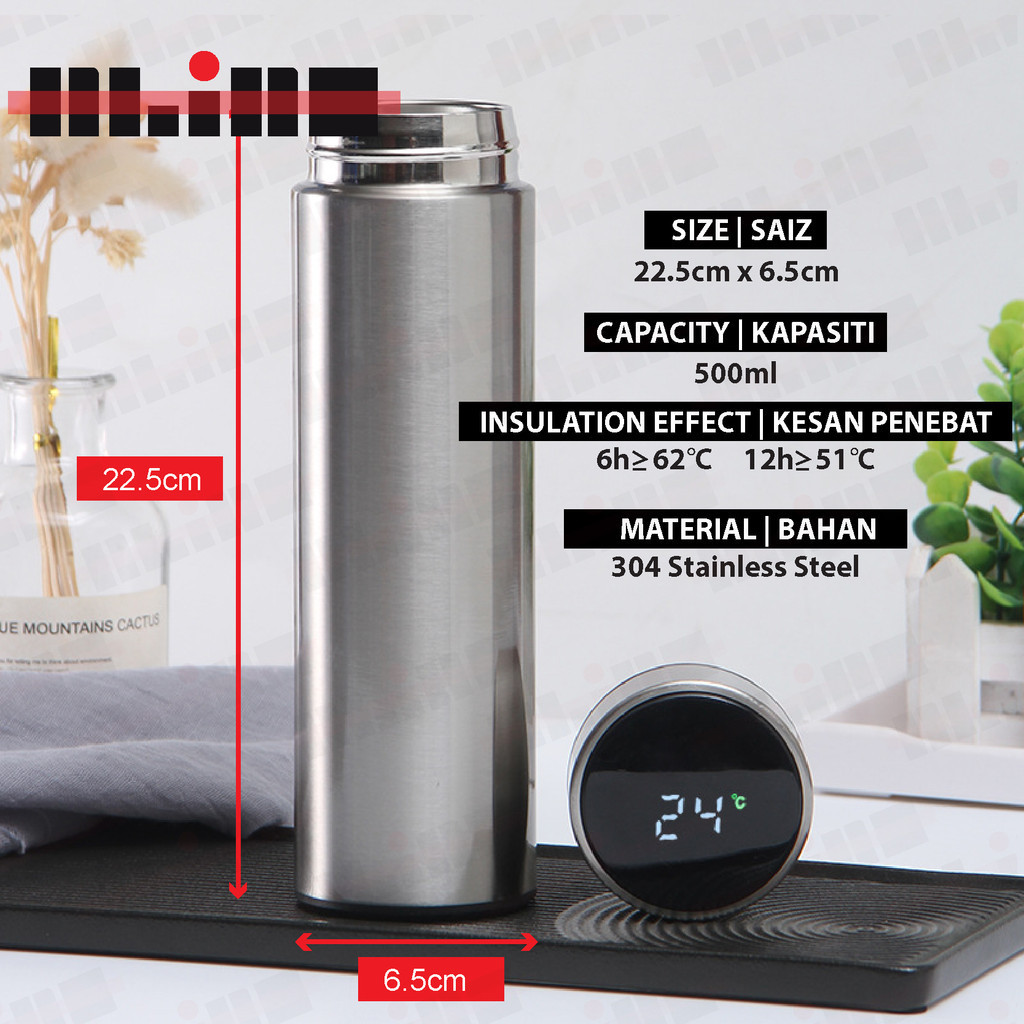 500ml Fashion Smart Temperature Flask LED Display Vacuum Thermal Flask Insulation Bottle