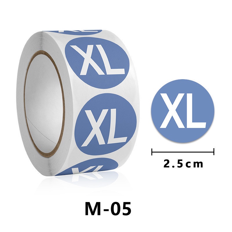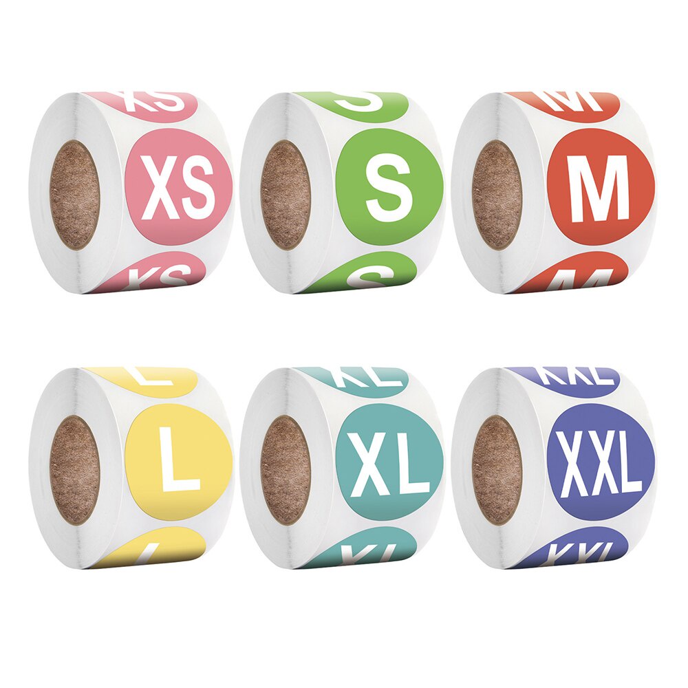 500pcs/roll Size Mark Sticker XS /S /M /L /XL /XXL Clothes Goods Colorful Coded Size Identification Baju Label Stickers